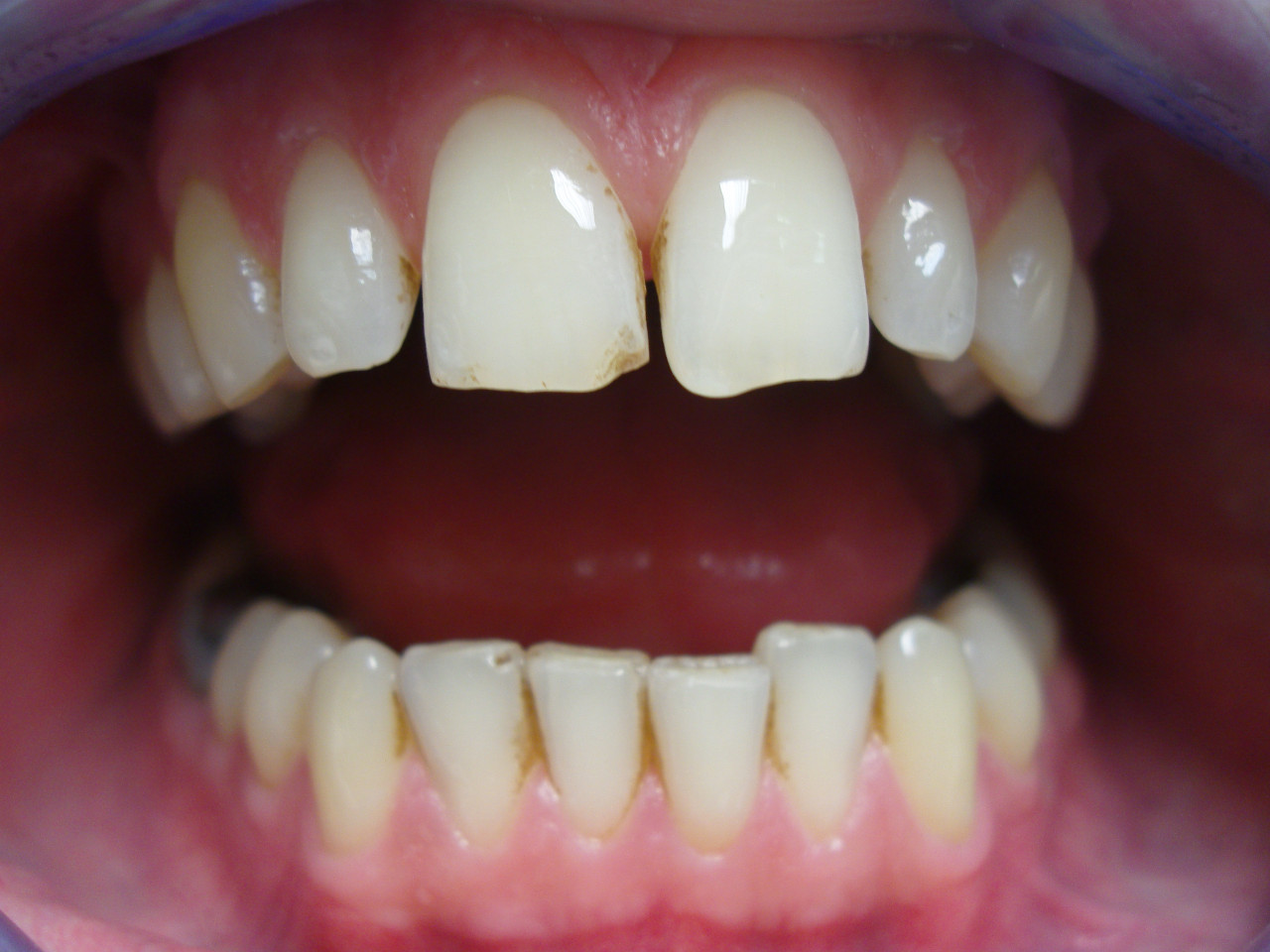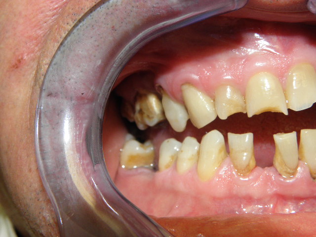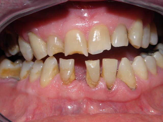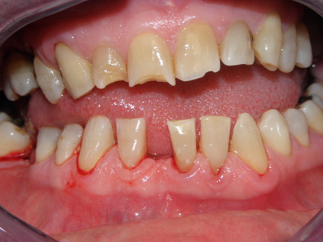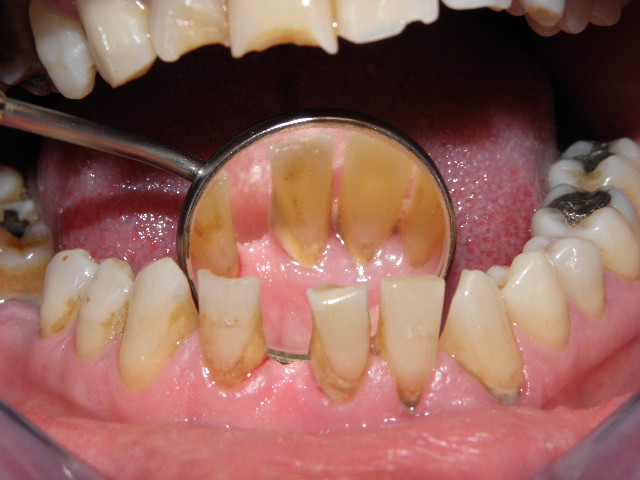 Stav pred odstránením nadďasnového a podďasnového zubného kameňa